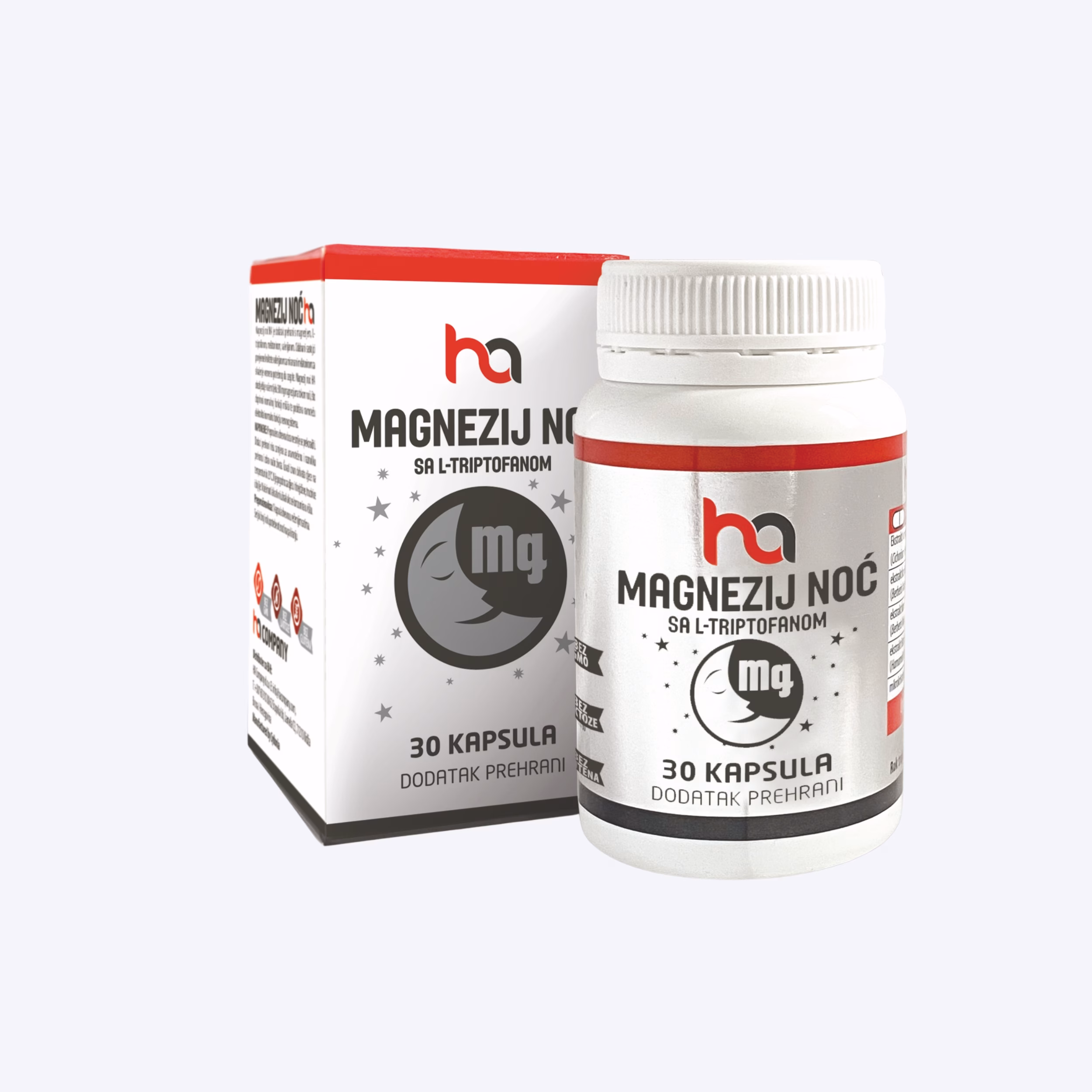 HA Magnezij Noć je poseban dodatak prehrani formulisan da podrži opuštanje organizma i kvalitetan san. Kombinacija magnezija i prirodnih sastojaka pomaže u smanjenju umora, nervoze i nesanice, dok istovremeno doprinosi normalnoj funkciji mišića i živčanog sistema.