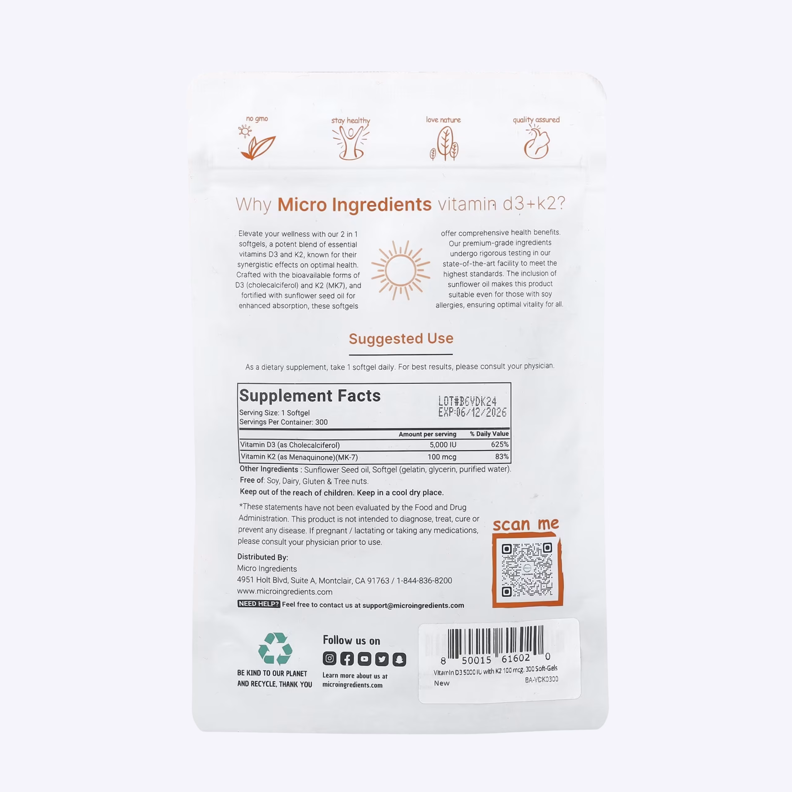 Micro Ingredients Vitamin D3 5000IU + K2 100mcg – 300 kapsula