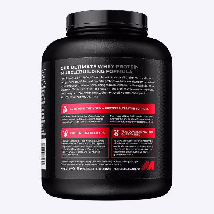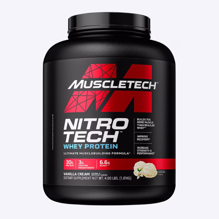 MuscleTech NitroTech je premium whey protein formulisan posebno za sportiste i aktivne osobe koje žele maksimalnu mišićnu masu, snagu i podršku oporavku. Ovaj proizvod kombinuje mješavinu visokokvalitetnih proteina sirutke sa dodatkom kreatina monohidrata za unaprijeđene performanse i rast snage što ga čini jednim od najefikasnijih proteina za rezultate u treningu.