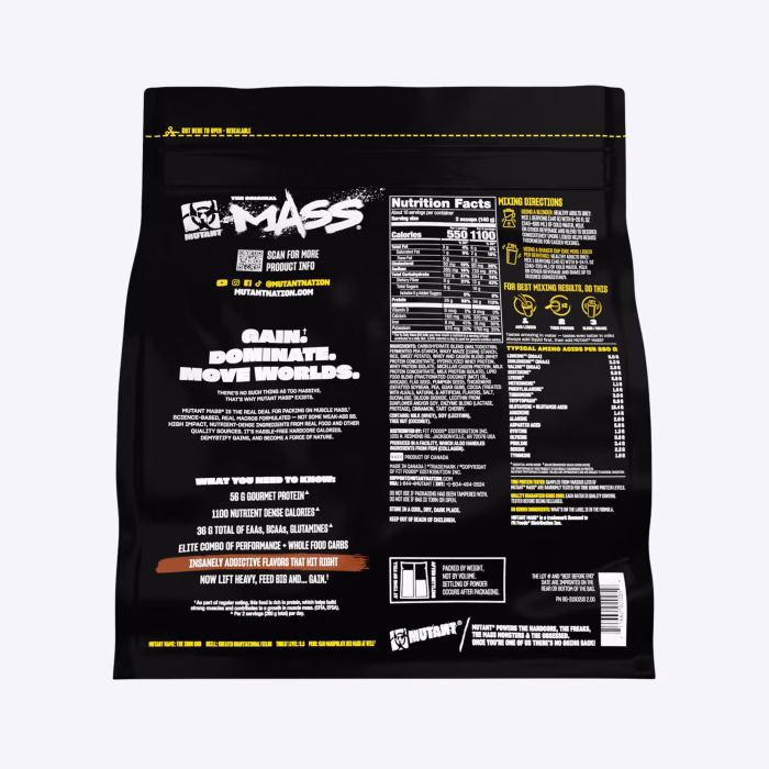 Mutant Mass Gainer je visokokvalitetni gainer iz Kanade, razvijen od svjetski poznatog brenda Mutant, koji je sinonim za snažne i učinkovite proizvode namijenjene ozbiljnom treningu i napretku. Ovaj gainer je dizajniran za osobe koje teško dobijaju na tjelesnoj težini i mišićnoj masi, te zahtijevaju visok unos kalorija iz provjerenih i kvalitetnih izvora.