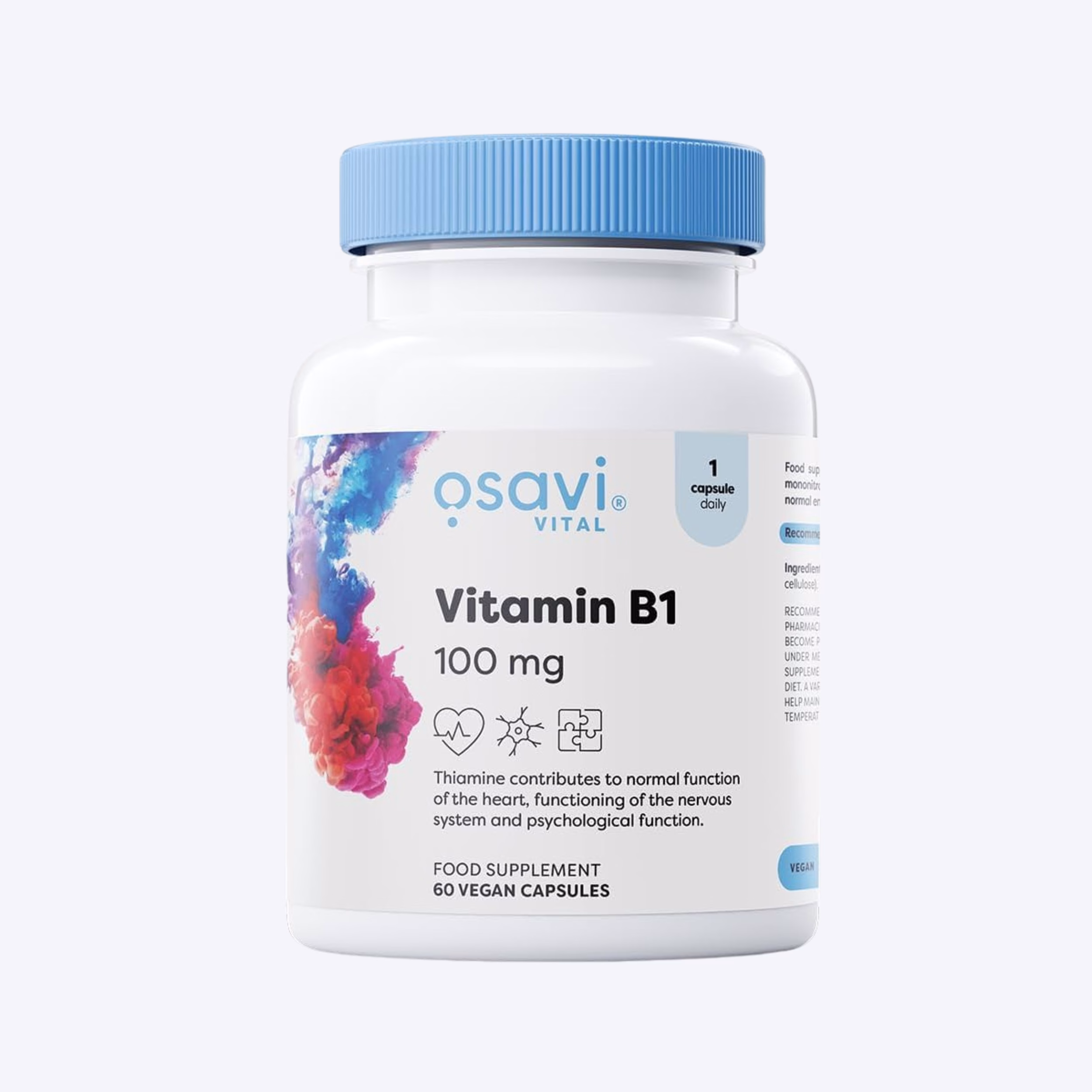 Ovaj Vitamin poznat i kao tiamin, esencijalan je nutrijent koji tijelo ne može samo proizvesti, pa ga je potrebno unositi putem prehrane ili dodataka. Sadrži čistu, visokodoziranu formulu koja osigurava optimalnu podršku za energiju, zdravlje nervnog sistema i normalnu funkciju srca. Posebno je koristan za osobe pod stresom, fizički aktivne i one sa povećanim potrebama za vitaminima B kompleksa.