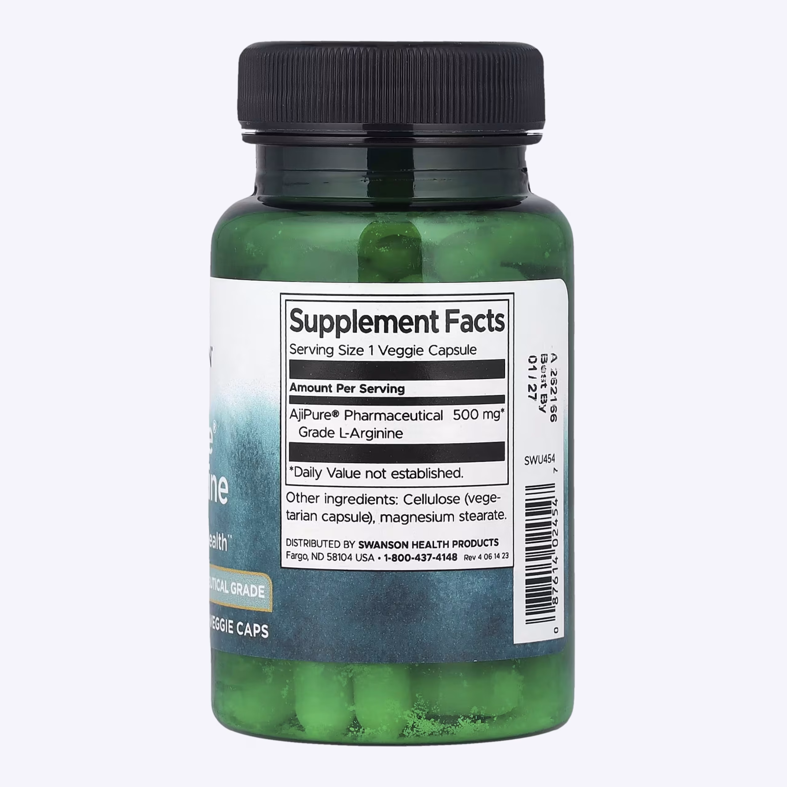 Swanson AjiPure L-Arginine sadrži 500 mg vrhunskog L‑arginina po kapsuli bez nepotrebnih dodataka. Proizveden fermentacijom iz ne-životinjskih izvora, AjiPure aminokiseline su 99–100 % čiste i često imaju znatno manje nečistoća u odnosu na druge brendove.