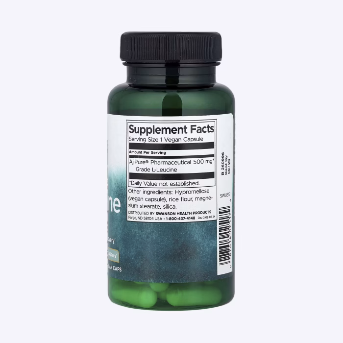 Swanson AjiPure L-Leucine je dodatak prehrani koji sadrži 500 mg čiste L-leucina po kapsuli, jedne od tri razgranate aminokiseline (BCAA) koja igra ključnu ulogu u sinteti proteina i podsticanju rasta mišića.
