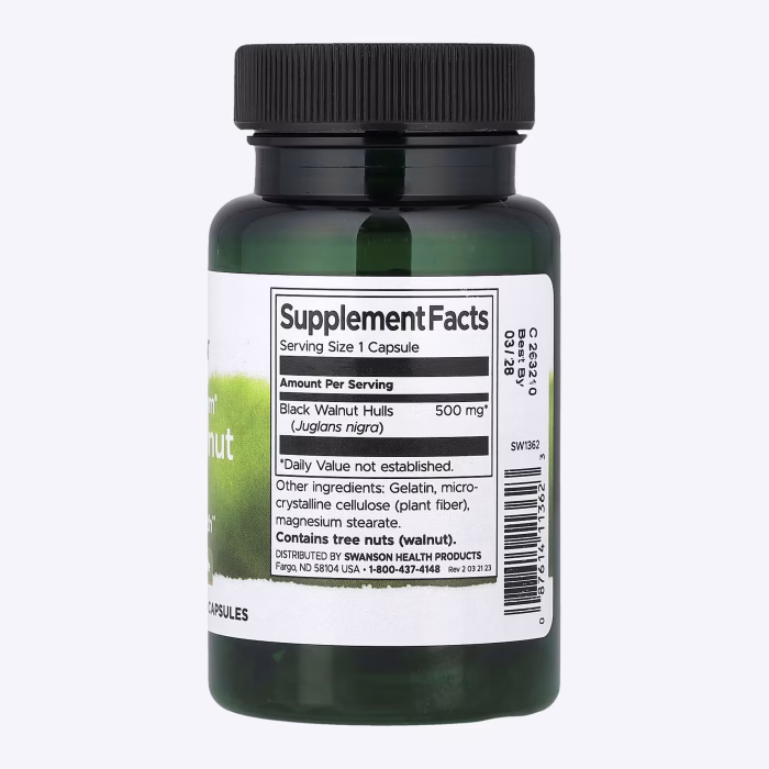 Swanson Black Walnut Hulls je prirodan dodatak za one koji žele očistiti organizam, podržati zdravlje crijeva i ojačati imunitet na biljnoj osnovi.