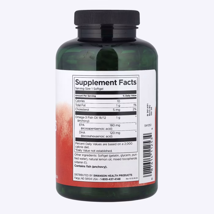 Omega 3 masne kiseline iz ribljeg ulja ključne su za zdravlje srca, mozga, vida i zglobova. Ova formula sadrži 1000 mg čistog ribljeg ulja po kapsuli, sa 180 mg EPA i 120 mg DHA, te je obogaćena prirodnim aromama limuna kako bi se uklonio neugodan riblji okus.