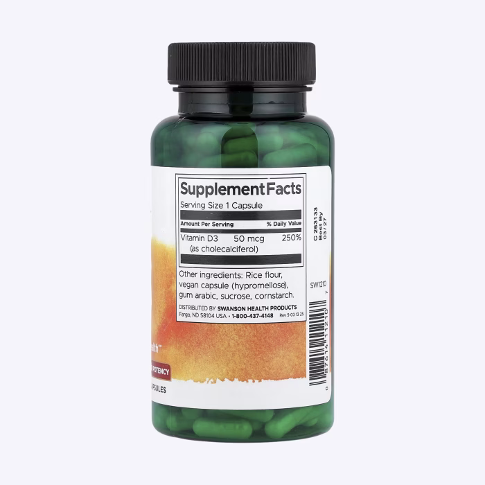 Swanson Vitamin D3 2000 IU je visokokvalitetan dodatak ishrani koji obezbjeđuje optimalnu dnevnu dozu vitamina D u njegovom najefikasnijem obliku – kolekalciferolu (D3). Vitamin D3 ima ključnu ulogu u zdravlju kostiju, mišića, imuniteta i normalnoj apsorpciji kalcija, što ga čini jednim od najvažnijih vitamina za svakodnevnu suplementaciju.