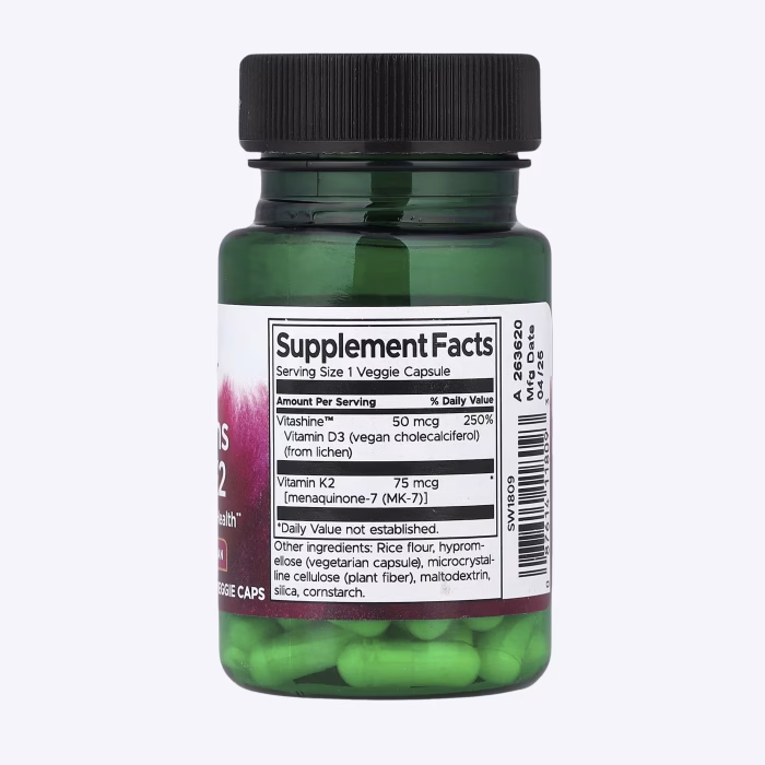 Swanson Vitamin D3&K2, sinergijska podrška zdravlju kostiju, srca i imunološkog sistema.