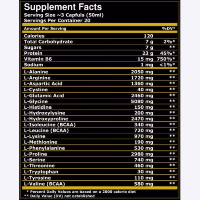 Universal Nutrition EAA Amino Liquid je tekući dodatak aminokiselina dizajniran da podrži izgradnju mišića, oporavak i performanse nakon intenzivnog treninga. Formula sadrži esencijalne i razgranate aminokiseline (BCAA) u lako probavljivom tekućem obliku, što omogućava brz unos i iskorištavanje od strane mišića.